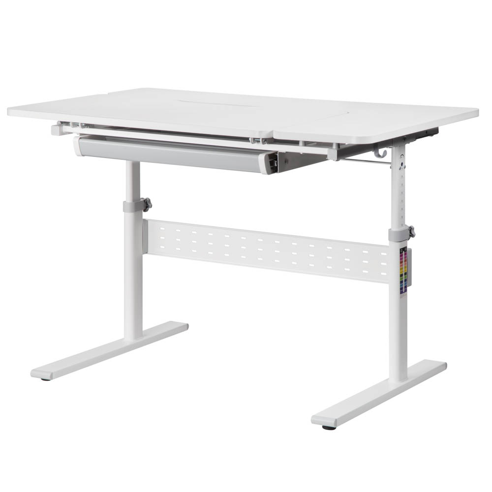 Характеристика Значение Регулировка столешницы зонированная (одновременно по высоте передняя и задняя части столешницы; по углу наклона - основная (передняя)). Механизм регулировки наклона столешницы бесступенчатый от 0° до 40° Механизм регулировки высоты столешницы бесступенчатая регулировка с помощью ручки всей столешницы от 54см и до 76см Размер всей столешницы (ШхГ) 100м х 60см Размер наклонной столешницы (ШхГ) 75см х 40см Предназначен для роста 110-180см Цвет столешницы белый Цветной декор ног(вставки) серый Материал столешницы ДСП (класс эмиссии Е0) Наличие систем хранения(размер ШхГхВ) выдвижной ящик Наличие крючка да Наличие навесной полки да Наличие подставки для книг да