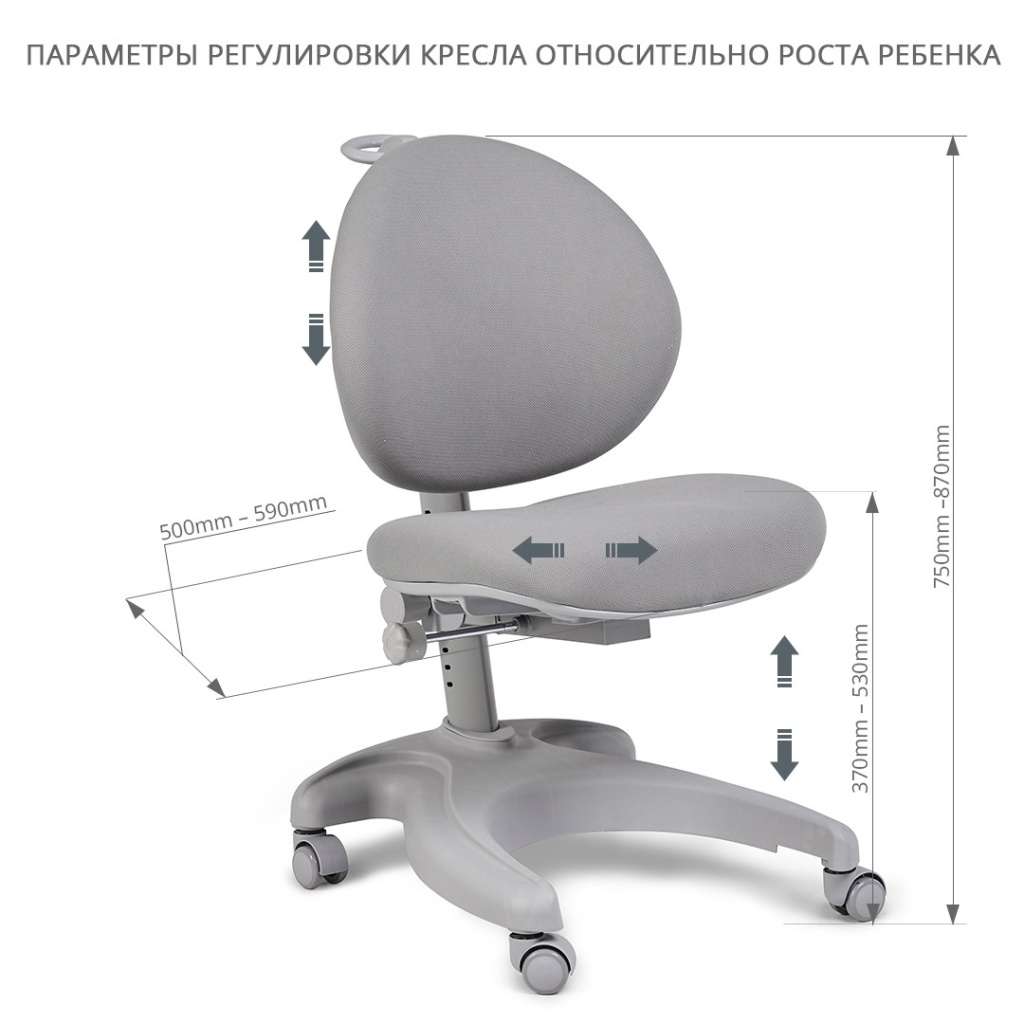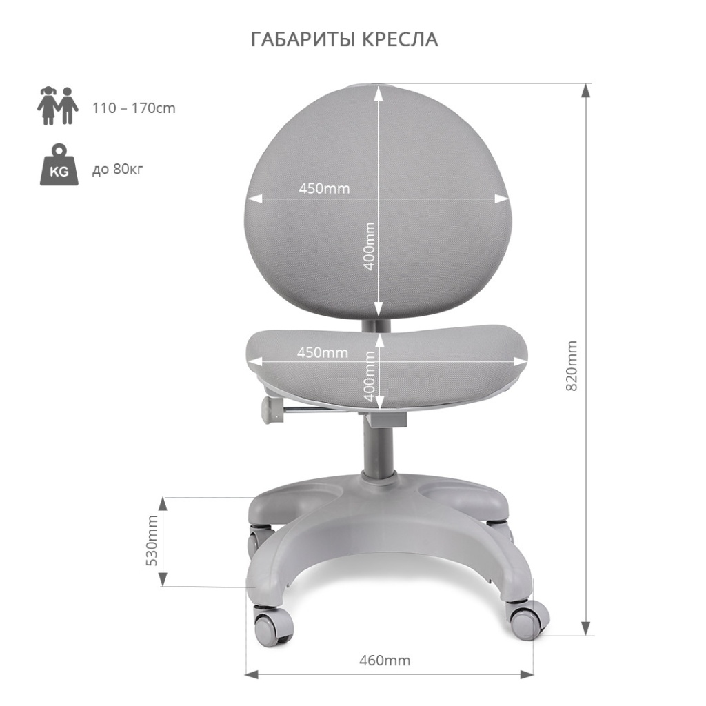 Размеры 680x550x650-930 мм Высота сиденья стула 370-570 мм Высота спинки стула 650-930 мм Размер сиденья стула 440x450X90 мм Размер спинки стула 450x420x70 мм Материал сталь + PA + губка + полиэстер + дерево Цвет Серый